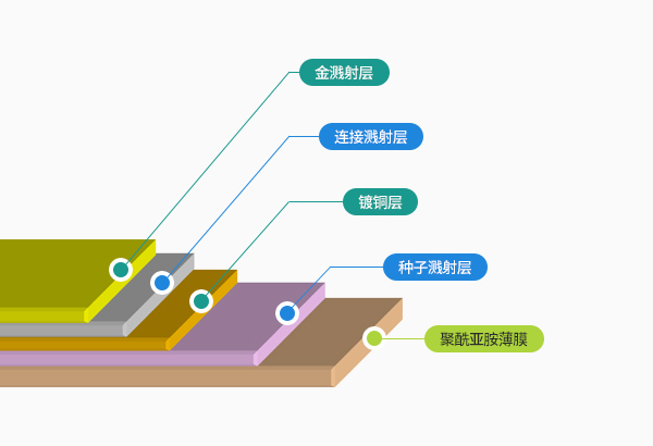 在聚酰亚胺薄膜上通过溅射和镀层工艺形成铜箔, 上面用Au溅射的柔性薄膜作为PCB模式或接地模式上实装的电导性接触端子的原材料。