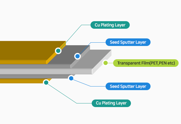 It is used as a raw material for mounting transparent FPC and LED devices with sputtered and plated transparent FCCL on a transparent film.